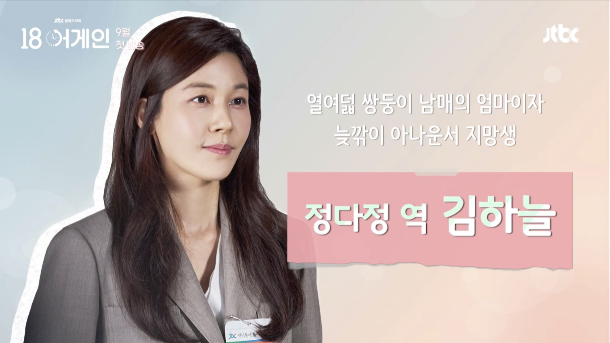 JTBC 드라마 <18 어게인>은 <모범형사> 후속작으로, 2020년 9월 21일 방영 예정이었으나 코로나19 확산 여파로 촬영이 중단되어 첫 방송을 앞두고 편성이 밀렸다. 같은 JTBC 드라마 <경우의 수>는 2020년 9월 18일 방영 예정이었으나 한 주 밀려 25일 방영 예정이다. <18 어게인> 측은 구체적인 편성은 논의 중에 있으며 9월 중에 편성될 것을 예정했다. <18 어게인>은 총 16부작으로 이루어져 있다.